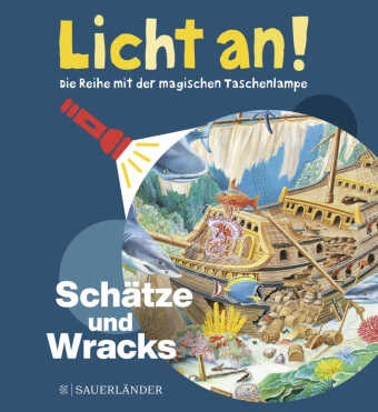 empfohlenes Alter: ab 4 Jahre, für die Vorschule, Schiffe, Schätze, Taschenlampe, Ozeane und Meere, entdecken, Unterwasserarchäologie, Wracks, verborgen, Ozeanographie (Meereskunde), Meere und Ozeane, Licht an!, versunken |