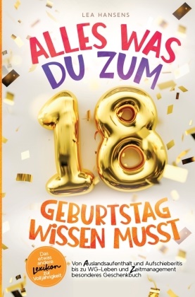 Ein besonderer Mensch wird endlich 18 - und du suchst nach dem etwas anderen und einzigartigen Geschenk, was begeistert und wirklich hilfreich ist?Mit dem 18. Geburtstag beginnt ein aufregender Lebensabschnitt. Hier steht das Geburtstagskind vor wesentlichen Fragen, Entscheidungen und Herausforderungen, die das weitere Leben maßgeblich beeinflussen.In dieser Phase sollte man bestimmte Fehler unbedingt vermeiden: Die richtige Ausbildungs- und Berufswahl, die Frage ob man ausziehen soll oder weiter im Hotel Mama wohnen bleibt, wie man verantwortungsvoll mit Finanzen umgeht und einschleichende Schulden vermeidet und ob ein Auslandsjahr wirklich das Richtige ist und wie genau dieses organisiert wird, sind nur einige Beispiele für eine unzählige Anzahl von Fragen, die sich Jugendliche stellen.In diesem "etwas anderen Lexikon" findet der 18-Jährige kompakte Infos rund um den Eintritt in die Volljährigkeit. Von Auslandsreisen, Aufschieberitis und Berufswahl, hin zum freiwilligen sozialen Jahr, Glück, WG-Leben und Zeitmanagement. Damit ist das ein besonderes Geschenk für Jungen und Mädchen und sich auch perfekt als Eyecatcher auf jeder Geburtstagsparty eignet.