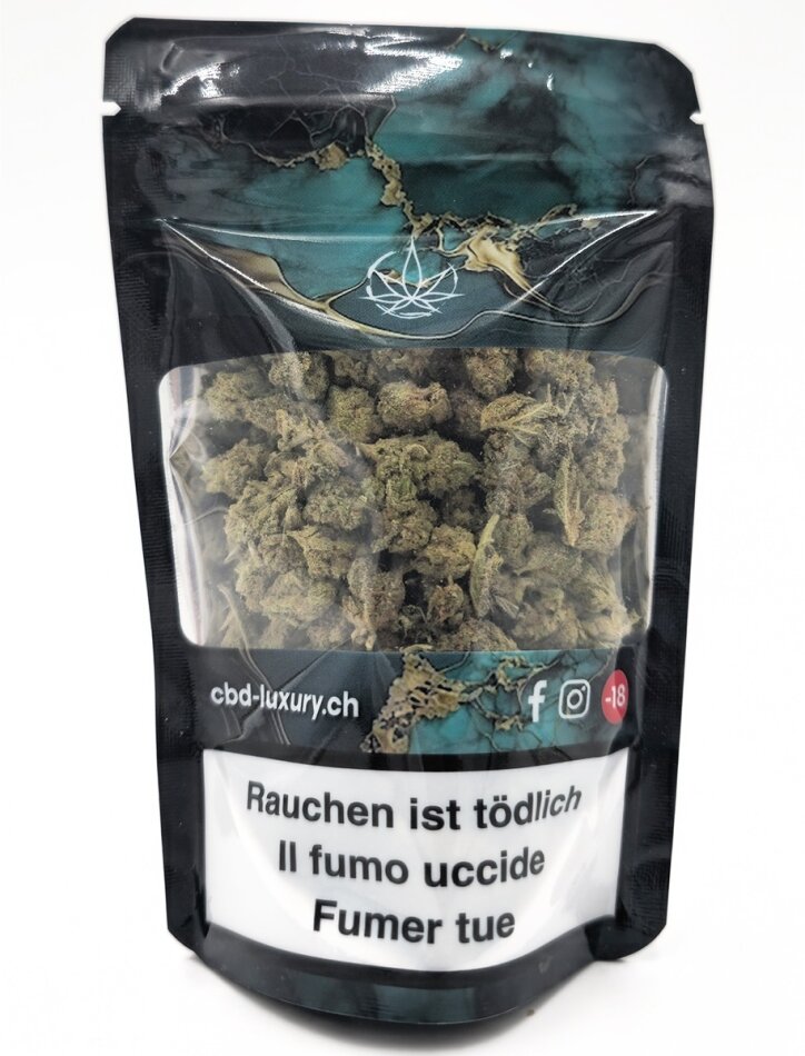 Die Plutonium Indoor CBD-Blüten von Luxury setzen ein echtes Statement in Sachen Qualität, Stil und Potenz. Sorgfältig indoor angebaut und unter strengsten Standards verarbeitet, überzeugt diese Sorte mit einem CBD-Gehalt von 15.6 % und einem THC-Gehalt von unter 1 % – perfekt für ein tief entspannendes, legales Genusserlebnis.