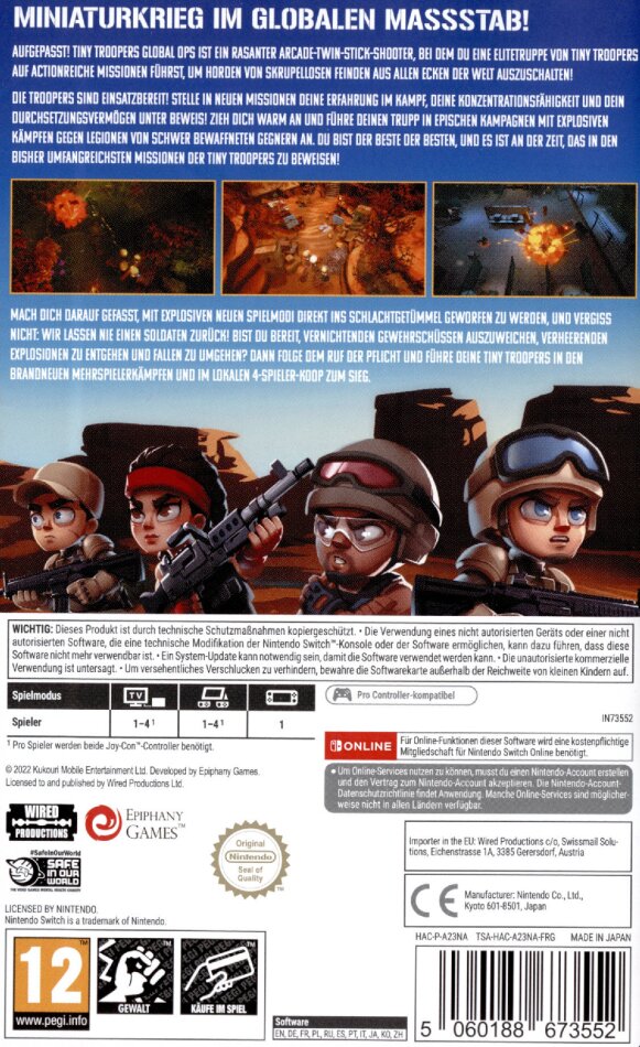 TINY TROOPERS: JOINT OPS Miniaturkriegsführung im Grossen Stil! Tiny Troopers Joint OPS + Bonus Zombie Edition ist ein epischer Arcade Shooter im Taschenformat auf actiongeladenen Minikarten voller Chaos und Zerstörung! Führe deine Tiny Troopers mit einer grossen Auswahl an Waffen und Spezialtruppen in den Kampf gegen finstere Feinde aus aller Welt. Sammle auf deinen Missionen Medaillen, Erkennungsmarken, Informationen und vieles mehr. Dich erwartet schwer bewaffneter, explosiver Spielspass! - Über 50 actiongeladene Minikarten voller Chaos und Zerstörung, inklusive einem Zombie-Überlebensmodus mit Online-Ranglisten! - Rekrutiere Spezialsöldner wie MG-Schützen, Sanis oder die Elite Delta Force, um gegnerische Aufständische zu besiegen!