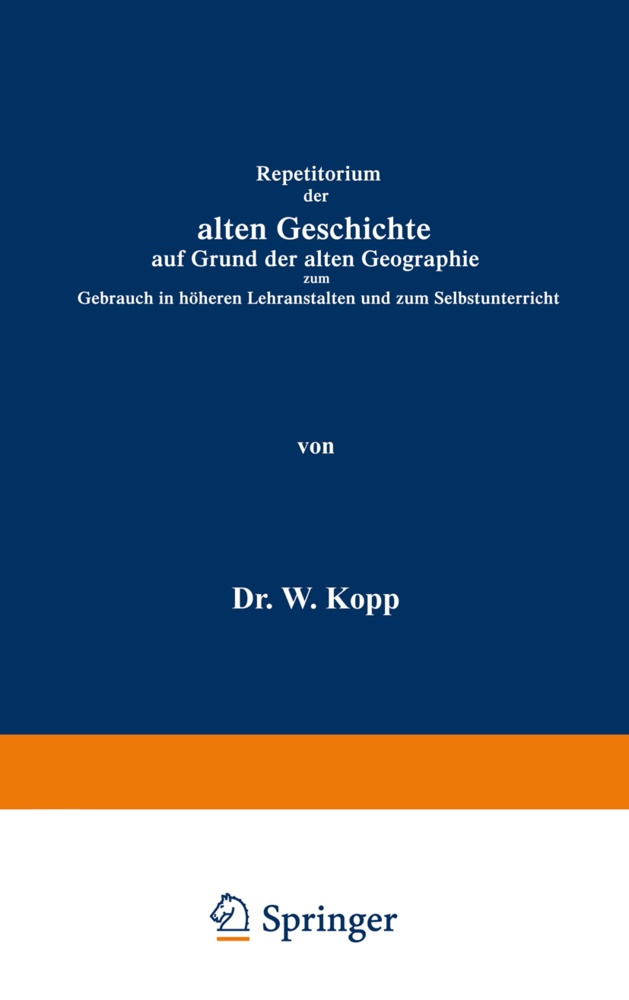 Dieses Repetitorium der alten Geschichte ist, wenn gleich erst später herausgegeben, als das erste Heft meiner Schriften über griechische und römische Litte ratur und Altertümer zu betrachten; denn es giebt geordnet sammt ihren Daten die historischen Fakta, auf denen das antike Leben erwuchs. Es kann ebensowohl zum Selbstunterricht benutzt, als in der Schule dem Geschichtsvortrage zu Grunde gelegt werden. Neu dabei dürften die vorausgesandten geographischen Über sichten sein, die das zeitraubende Diktieren ersparen und verhindern sollen, dafs unrichtige Namen nachge schrieben werden. Freienwalde a. d. O. im Mai 1880. Der Verfasser. J. Die Völker des alten Orients. 1. Die Juden. Geographische Übersicht. Ge b i r g e: der Libanon, der Antilibanus mit dem Hermon, der Karmel, der Berg Tabor, das Gilboa-Ge birge, das. Gebirge Ephraim, das Gebirge Juda; der Berg Nebo (Moses t), das Gebirge Gilead. - Seeen: der See Merom, der See Genezareth oder der See von Tiberias oder das galiläische Meer, das tote Meer oder Lacus Asphaltites. - Flüsse: der Jordan, der auf dem Her mon, dem Südabhange des Antilibanus, entspringt und ins tote Meer (Sodom, Gomorrha) fällt, mit dem Hie romax und Jabok. - Einteilung zu Christi Zeit: 1. Judäa mit Jerusalem (Burg Zion, Tempel auf dem Hügel Moriah, der Ölberg, der Bach Kidron mit dem ThaI Josaphat), Bethlehem, Jericho, Hebron, Joppe (Jaffa), Emmaus, Beerseba (. von Beerseba bis Dan"). - 2. Samaria mit Samaria und Sichern. - 3. Galiläa mit Nazareth, Kana, Endor, Nain, Tiberias, Genezareth, Kapernaum, Dan. - 4. Peräa ohne erwähnenswerte Orte.