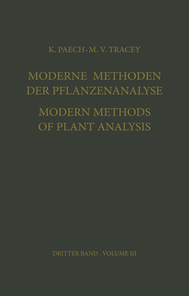 - Contents.- Die niederen Terpene (ätherische Öle und Harze allgemein).- Gebietsumgrenzung.- A. Qualitative Nachweismethoden für Duftöle und Harze im pflanzlichen Material..- B. Quantitative Methoden zur Bestimmung. des Duftölgehaltes in Pflanzenmaterial.- C. Quantitative Methoden zur Bestimmung des Harzgehaltes von Pflanzenteilen.- D. Untersuchung isolierter ätherischer Öle und Harze.- Literatur.- Pyrethrins and Allied Compounds..- A. Distribution.- B. Active Principles.- C. Analysis.- References.- Triterpene und Triterpen-Saponine.- A. Einleitung und Übersicht.- B. Zur Biogenese und Physiologie der Triterpene.- C. Qualitative Nachweismethoden für Triterpene.- D. Methoden zum Nachweis und zur Gehaltsbestimmung von Saponinen.- E. Methoden zur Isolierung und Kennzeichnung der Triterpene und einiger Saponine.- Literatur.- Phytosterine, Steroidsaponine und Herzglykoside......- A. Phytosterine.- V. Vorkommen und Eigenschaften einzelner Phytosterine.- Literatur.- B. Steroidsaponine.- Literatur.- C. Herzglykoside.- Literatur.- Carotinoids ..- A. General Distribution of C40-Carotenoids.- B. Separation and Identification.- C. Isolation and Identification of Pigments.- D. Quantitative Determination of Carotenoids.- E. Carotenoids Containing Less than 40 Carbon Atoms.- References.- The Determination of Rubbrer and Gutta in Plants.- A. Chemical and Physical Properties.- B. Occurrence.- C. Methods of Analysis.- D. Summary.- References.- Simple Benzene Derivatives..- A. Distribution and Properties of Phenols.- B. Qualitative Tests for Phenols.- C. Identification of Phenols.- D. Quantitative Determination of Phenols.- E. Aromatic Acids.- References.- Natural Tropolones.- References.- Ein- un zweikernige Chinone.- A. Vorkommen und Verteilung ein- und zweikerniger Chinone inPflanzen.- B. Isolierung von Chinonen aus biologischen Materialien.- C. Allgemeine Analytik chinoider Stoffe.- D. Die einzelnen bisher aus Pflanzen isolierten ein- und zweikernigen Chinone und ihre wichtigsten analytischen Daten.- E. Vitamin K1.- Literatur.- Natural Phenylpropane Derivatives........- A. Introduction.- B. Hydrocarbons.- C. Alcohols.- D. Acids.- E. Esters.- F. Aldehydes.- G. Ketones.- H. Phenols.- I. Phenol Ethers.- References.- Lignans.- I. General Structure and Theory of Biosynthesis.- II. Isolation and Purification of Lignans.- References.- Anthocyanins, Chalcones, Aurones, Flavones and Related Water-Soluble Plant Pigments.- A. The Distribution of Flavonoid Compounds in Nature.- B. The Isolation of Flavonoid Compounds from Plant Materials.- C. Identification by Color Reactions.- D. Analysis by Chromatographic Methods.- E. Absorption Spectra of Flavonoid Compounds.- F. Polarographie Analysis of Flavonoid Compounds.- References.- Lignin.- A. Das Lignin in der Pflanze.- B. Zur Chemie des Lignins.- C. Isolierung und Bestimmung des Lignins.- Literatur.- Natürliche Gerbstoffe.- A. Übersicht und Einteilung.- B. Allgemeine Eigenschaften.- C. Qualitative analytische Untersuchung.- D. Quantitative Analyse.- E. Beispiele für die präparative Darstellung von natürlichen Gerbstoffen.- Literatur.- Anthraglykoside und Dianthrone.- A. Vorkommen und Eigenschaften.- B. Konstitution und Bestimmung.- Literatur.- Growth Substances in Higher Plants.- A. Extraction of Growth Substances.- B. Release of Bound Auxin and Conversion of Auxin Precursors.- C. Fractionation of Extracts.- D. Isolation of Growth Substances in Pure Form.- E. Biological Tests.- F. Colorimetric Methods for the Determination of Indole-3-Acetic Acid.- G. Identification of Growth Substances.-References.- Antibiotics.- A. Introduction.- B. Historical.- C. The Detection of Antibiotic Substances in Plant Tissues and the Assay of Active Preparations.- D. Plants which Yield Antibiotically-active Preparations.- E. Antibiotic Compounds and Groups of Compounds of Wide Distribution in Higher Plante.- References.- Sachverzeichnis (deutsch-englisch).- Subject Index (english-german).