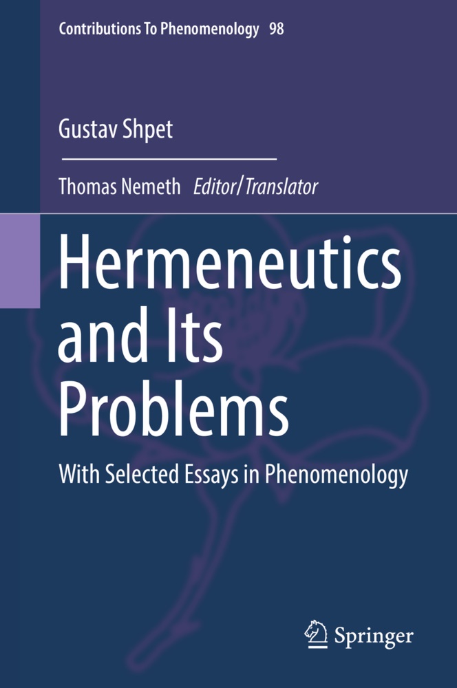 Chapter 1. Editorial Introduction to Hermeneutics and Its Problems.- Chapter 2. Preface.- Chapter 3.- Origin of the Idea and of the Methods of Hermeneutics.- Chapter 4. Flacius [and Biblical Hermeneutics in the Renaissance].- Chapter 5. General Remarks on the Relation of the Sciences [to Hermeneutics] as a Transition to Ernesti.- Chapter 6. Ernesti [and Ast: The Reorientation of Hermeneutics from Theology Toward Philology].- Chapter 7. [Friedrich] Schleiermacher.- Chapter 8. [Hermeneutics After Schleiermacher].- Chapter 9. [Hermeneutical Moments of Historical Methodology].- Chapter 10. [Dilthey's Development of Hermeneutics].- Chapter 11. The Contemporary Situation.- Chapter 12. Appendix 1. Consciousness and Its Owner.- Chapter 13. Appendix 2. Wisdom or Reason?.- Chapter 14. Appendix 3. Philosophy and History.- Chapter 15. Appendix 4. Skepticism and Dogmatism of Hume.- Chapter 16. Appendix 5. Shpet [Self-Authored Entry in Granat Encyclopedic Dictionary ].
