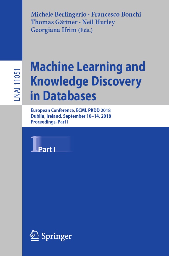 The three volume proceedings LNAI 11051 – 11053 constitutes the refereed proceedings of the European Conference on Machine Learning and Knowledge Discovery in Databases, ECML PKDD 2018, held in Dublin, Ireland, in September 2018. The total of 131 regular papers presented in part I and part II was carefully reviewed and selected from 535 submissions; there are 52 papers in the applied data science, nectar and demo track.