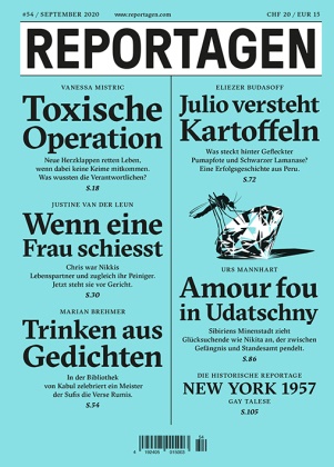 Reportagen schickt die besten Autorinnen und Autoren rund um den Globus. Für Geschichten, die bleiben.In dieser Ausgabe:- Toxische Operation. Neue Herzklappen retten Leben, wenn dabei keine Keime mitkommen. Was wussten die Verantwortlichen? Von Vanessa Mistric.- Wenn eine Frau schiesst. Chris war Nikkis Lebenspartner und zugleich ihr Peiniger. Jetzt steht sie vor Gericht. Von Justine van der Leun.- Trinken aus Gedichten. In der Bibliothek von Kabul zelebriert ein Meister der Sufis die Verse Rumis. Von Marian Brehmer.- Julio versteht Kartoffeln. Was steckt hinter Gefleckter Pumapfote und Schwarzer Lamanase? Eine Erfolgsgeschichte aus Peru. Von Eliezer Budasoff.- Amour fou in Udatschny. Sibiriens Minenstadt zieht Glücksuchende wie Nikita an, der zwischen Gefängnis und Standesamt pendelt. Von Urs Mannhart.- Die historische Reportage: New York 1957. Von Gay Talese.