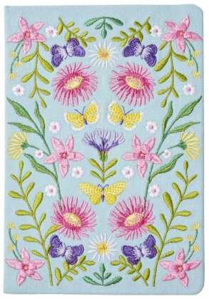 mit den filigranen, gestickten Blüten- und Schmetterlingsmotiven ist nicht nur besonders schön, sondern auch robust, sodass das Notebook bedenkenlos in jeder Tasche mitgenommen werden kann. Es ist mehr als ein Notizbuch, es ist ein