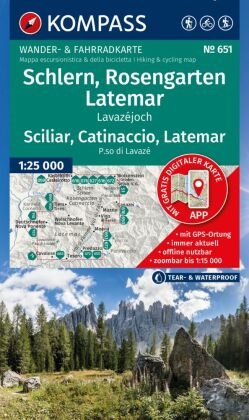 Ausstattung der Wanderkarte Schlern, Rosengarten, Latemar, Lavazejoch / Sciliar, Catinaccio, Latemar, Passo di Lavaze: