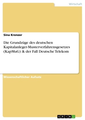 Wissenschaftlicher Aufsatz aus dem Jahr 2009 im Fachbereich BWL - Investition und Finanzierung, Note: 2,0, , Sprache: Deutsch, Abstract: 1. EinleitungIntention der Bundesregierung war es, bedingt durch zahlreiche Unternehmenszu-sammenbrüche und -krisen, den Kapitalmarktmarkt und die internationale Wett-bewerbsfähigkeit in Deutschland zu stärken .Im Hauptinteresse steht hierbei das Vertrauen der Anleger in die Prozesse und Regelungen des Kapitalmarktes. Daher mussten von Seiten der Regierung Maß-nahmen geschaffen werden, die zur Förderung der Kapitalmarkttransparenz bei-tragen, umfangreiche Kontrollen der agierenden Unternehmen gewährleisten und geschädigten Anlegern angemessene Unterstützung bei der Geltendmachung des ihnen zustehenden Rechts bieten. Daher trat am 01. November 2005, in Anleh-nung an das US-amerikanische Sammelklageverfahren, das Kapitalanleger-Musterverfahrensgesetz in Kraft, dass die Geltendmachung von Ansprüchen der Kapitalanleger in einem Musterverfahren bündeln soll und dadurch zu einer Ver-besserung des Verbraucherschutzes und gleichwohl zu einer Entlastung der Ge-richte führen kann. Ob das Gesetz sich bewähren wird, wird sich innerhalb der festgesetzten 5-Jahres-Frist zeigen.Wie in Kapitel fünf näher erläutert wird, ist der Rechtsstreit der Deutschen Tele-kom, in dem eine Vielzahl von Klägern Ansprüche gegen das Unternehmen gel-tend machen, weil sie sich diese von der Telekom betrogen fühlen, zur "Bewährprobe" des Kapitalanleger-Musterverfahrensgesetz geworden. Doch die Grundzüge zu Überlegungen der Bewältigung von Massenklagen reichen weit zurück, die Entstehungsgeschichte des Unternehmens wird daher in Kapitel zwei kurz aufgeführt. Der Prozess zum bis zum letztlichen Inkrafttreten sowie der Auf-bau und grundsätzliche Erwägungen für die Ausgestaltung des Gesetzes werden im dritten Kapitel dargestellt. In Kapitel vier wird die Konzeption des Musterver-fahrens, welche wesentlicher Bestandteil der gesetzlichen Reglung ist, aufgezeigt. Kapitel sechs greift die aufgeführten Inhalte noch einmal kurz auf und schließt diese Arbeit ab.