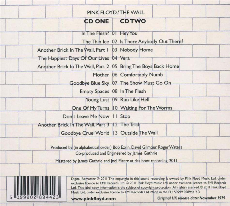 Pink Floyd the Wall Je pense qu'il s'ajit de là d'un des 10 meilleurs album de Rock de tout les temps,EXTRAORDINAIRE, beau a pleurer, varié, original,produit à la perfection.On ne vends pas 20 millions d'exemplairs d'un album par hasard.....