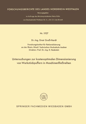 1. Einführung und Problemstellungc.- 2. Verteilung der Ausstoßintervaule einer Fertigungsstufe.- 3. Bisherige Modelle zur Bestimmung der Anzahl und der Kapazität von Werkstückpuffern in Maschinenfließreihen.- 4. Gesichtspunkte bei der Einrichtung von Werkstückpuffern in Maschinenfließreihen.- 5. Das Verfahren zur Ermittlung der kostenoptimalen Kapazität von Werkstückpuffern in Maschinenfließreihen.- 6. Zusammenfassung.- 7. Literaturverzeichnis.- 8. Abbildungen.- Anhang: Durchrechnung des Verfahrens auf einer Datenverarbeitungsanlage vom Typ CD 6400.