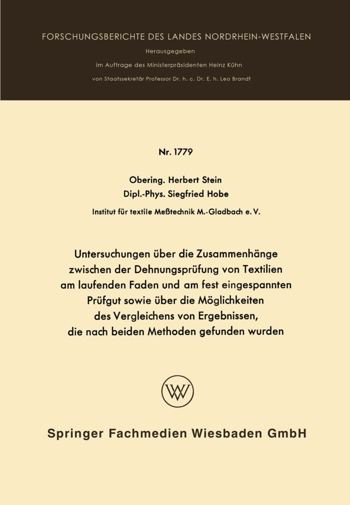 Mit DIN-Blatt 53815 wird aufgezeigt, wie die Kraft-Dehnungs-Eigenschaften eines Fadenmaterials durch die beim statischen Zugversuch gefundenen Kraft Längenänderungs-Kuryen darzustellen sind. DIN-Blatt 53829 behandelt Dehnkraftprüfungen am laufenden Faden. Auch mit derartigen Untersuchungen lassen sich charakteristische Kurven für ein Prüfgut ermitteln, wenn nacheinander verschiedene Dehnungsstufen eingestellt und die sich dabei ergebenden Kraft-Dehnungs-Wertepaare in einem rechtwinkligen Koordinatensystem eingetragen werden. Bei der zunehmenden Bedeutung, die der Beurteilung der Kraft-Dehnungs-Eigen schaften insbesondere von geschaffenen Fasern zukommt, ist es von Interesse, Untersuchungen darüber anzustellen, wieweit die nach dem statischen Zugversuch und die am laufenden Faden ermittelten Kraft-Längenänderungs-Kurven mit einander vergleichbar sind. Um die damit anfallenden Arbeiten durchführen zu können, wurde beim LandNordrhein-Westfalen die Gewährung einer Forschungs beihilfe für das Forschungsthema "Untersuchungen über die Zusammenhänge zwischen der Dehnungsprüfung von Textilien am laufenden Faden und am fest eingespannten Prüfling sowie über die Möglichkeit des Vergleichs von Ergebnissen, die nach den beiden Methoden gefunden wurden" beantragt. Die Bewilligung der erbetenen Mittel ermöglichte die Durchführung des Vor habens, über dessen Ergebnisse nachstehend berichtet wird.