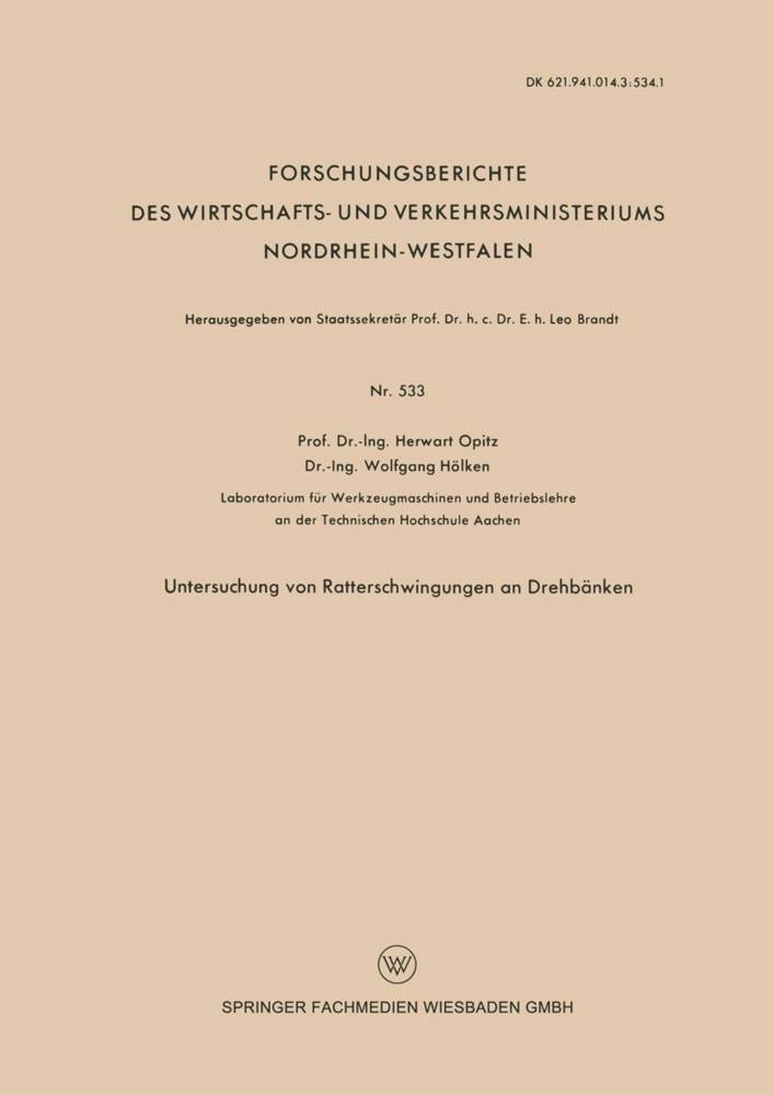 Gliederung.- 1. Einleitung.- 2. Übersicht über die bisherige Forschung.- 3. Die Untersuchung der an der Ratterschwingung beteiligten Schwingungssysteme.- 4. Experimentelle Untersuchungen an der ratternden Maschine.- 5. Die Abhängigkeit des Ratterns von den Zerspanungsbedingungen.- 6. Die Abhängigkeit des Ratterns von den elastischen Eigenschaften des Meißels.- 7. Mathematische Behandlung der untersuchten Ratterschwingungen.- 8. Zusammenfassung.- Zeichenerklärungen.