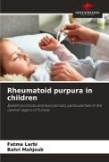 With the aim of analyzing the clinical and evolutionary features of rheumatoid purpura in children, we retrospectively studied 111 cases collected in a pediatric department over a 19-year period. The sex ratio was 1.4. The mean age was 6 years (1-16 years). Diagnosis was based on the constant presence of a cutaneous syndrome consisting of symmetrical purpuric lesions electively affecting the declive regions, associated with an articular syndrome (84 cases) and/or a digestive syndrome (72 cases). Renal involvement was observed in 30% of cases. Nephrotic syndrome was noted in 3 patients, 2 of whom developed renal failure. The most frequent complications were digestive (21.6%). Treatment was purely symptomatic in the majority of cases (95.5%). Four patients required corticosteroid therapy because of severe abdominal pain or nephrotic syndrome. Only one patient required the introduction of a cortico-resistant nephrotic syndrome. The majority of patients had a favourable outcome. Relapse or recurrence was noted in 7 cases and 4 respectively.