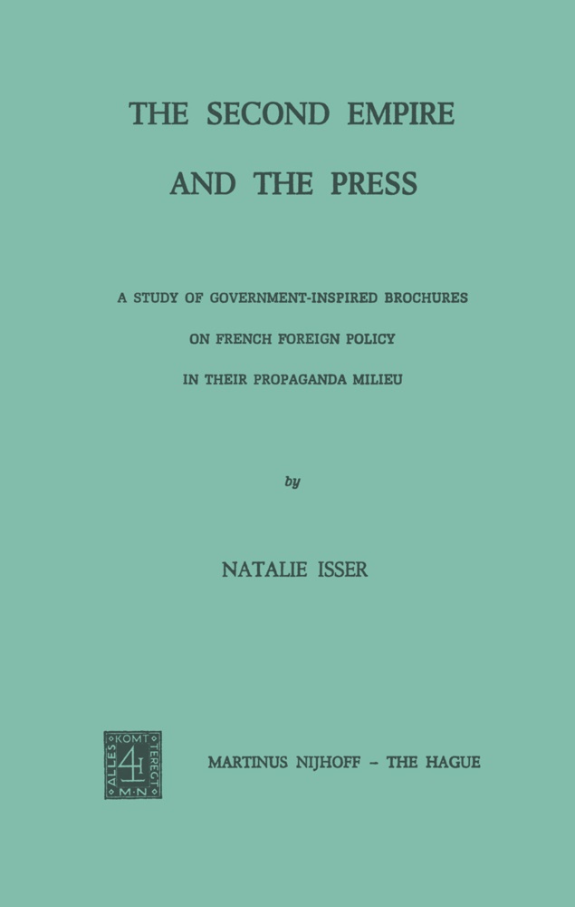 I. The Role of Propaganda Before and After the Election of 1848.- II. Napoleon III's Methods of Creating Public Opinion, 1849-1858.- III. Brochures on England and Roumania, 1858.- IV. Brochures on Italian Nationalism, 1859.- V. Brochures on the Roman Question, 1859-1870.- VI. Brochures on Germany and Her Neighbors, 1860-1870.- VII. Brochures and the Apology for Defeat, 1868-1870.- VIII. Conclusion.