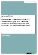 Hierfür müssen zuvorderst definitorische Unschärfen geklärt werden, um sodann die Individualisierungsthese von Georg Simmel zu behandeln. Mitnichten kann im Rahmen dieser Hausarbeit auf alle Eigenheiten, Ideen und Thesen Simmels zur Individualisierung eingegangen werden, da diese über fast alle seine Werke verstreut anzutreffen sind. Ziel ist es den Prozess der Individualisierung nach Simmel darzulegen, auf Individualität, Arbeit und Konsum in der Postmoderne einzugehen und die digitale Selbstdarstellung, als gesellschaftliches Paradigma, auf Foucaults Gouvernmentalitätsstudien zu beziehen.