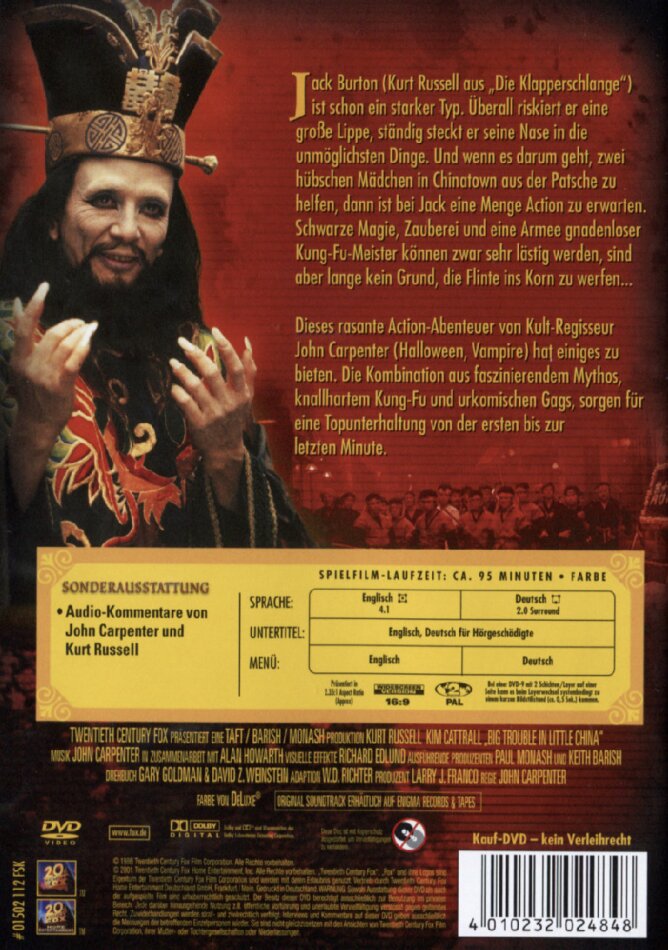 der beste film von carpenter nach dem meilen stein des scifi horrors das ding aus deiner anderen welt. empfehlenswert die englische fassung vom ding, weil viele extras und audiokommentar vom chef. top alle beide. doch im bezug au big trouble eine top bewertung. und aus