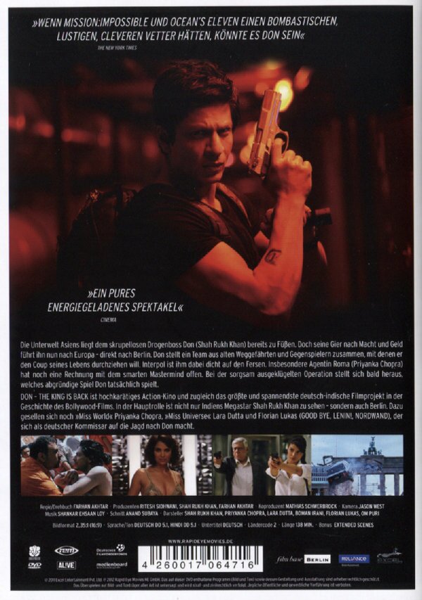 Die gute Nachricht zu Beginn. Unser Shah Rukh hat einen klasse Film gedreht, der zu großen Teilen in Berlin spielt. Wie toll ist das denn, bitteschön? Nun gut, wer den ersten Teil aus dem Jahre 2006 nicht gesehen hat, tut mir zwar leid, kann die Fortsetzung aber trotzdem beruhigt schauen und der Handlung des Action-Krimis ohne weiteres folgen.
