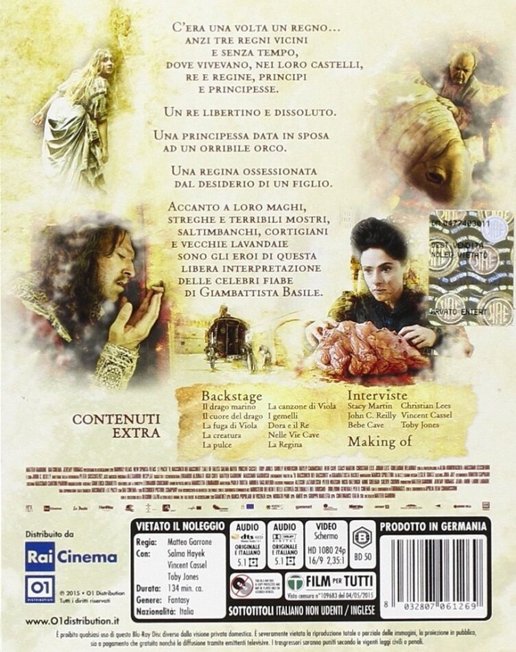 | Attore | Salma Hayek, Vincent Cassel, Toby Jones, John C. Reilly, Shirley Henderson, Hayley Carmichael, Bebe Cave |