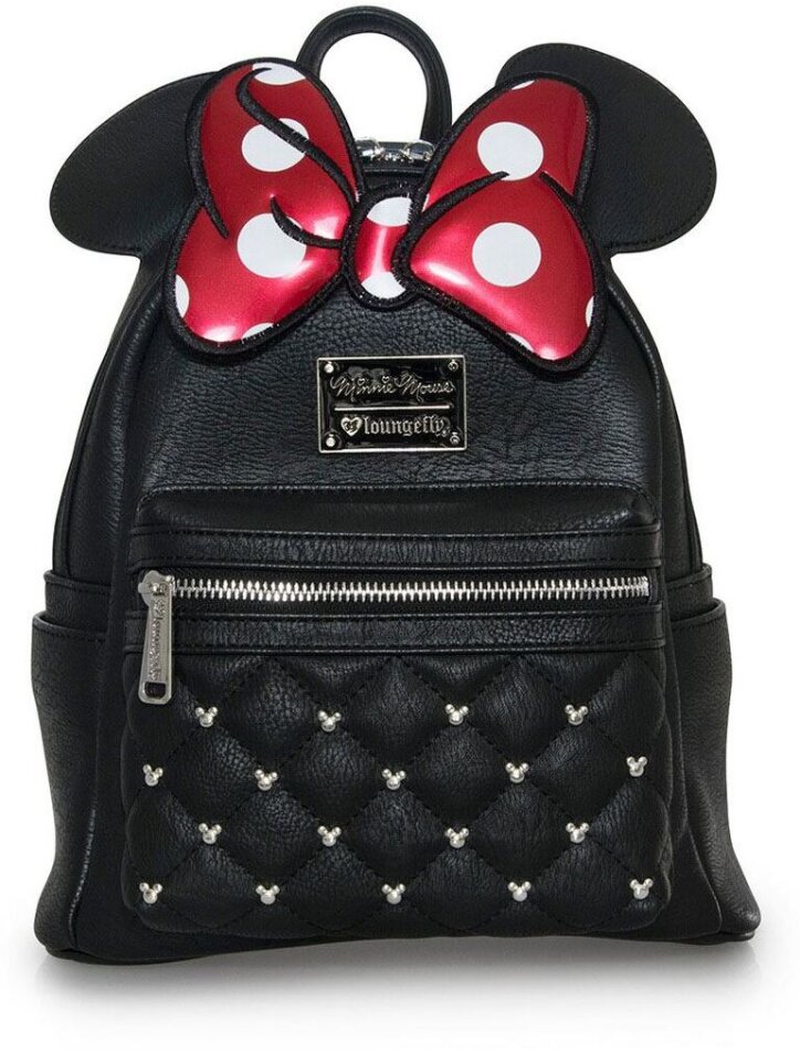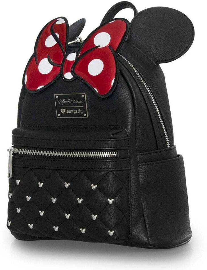 Backpack inspired by Disney's Minnie Mouse. Top zip around closure. Interior back wall zip pocket, front wall card slot.